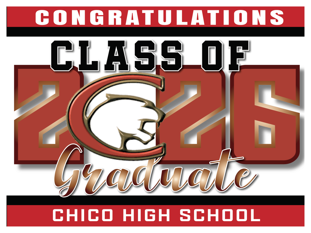 CHICO HIGH SCHOOL-CHICO, CA All signs are 24″ wide x 18″ high and come with an H-stakeAll signs going to Chico will be shipped directly to you. New! Custom Design Graduation Signs with photo and H-Stake $28 each These are samples, we will change the logos and high school names to match your school. Click here to order Click here to order Regular Rectangle Signs with H-Stake $18 each BACK TO SCHOOL SELECTION PAGE Click here to purchase Click here to purchase Click here to purchase