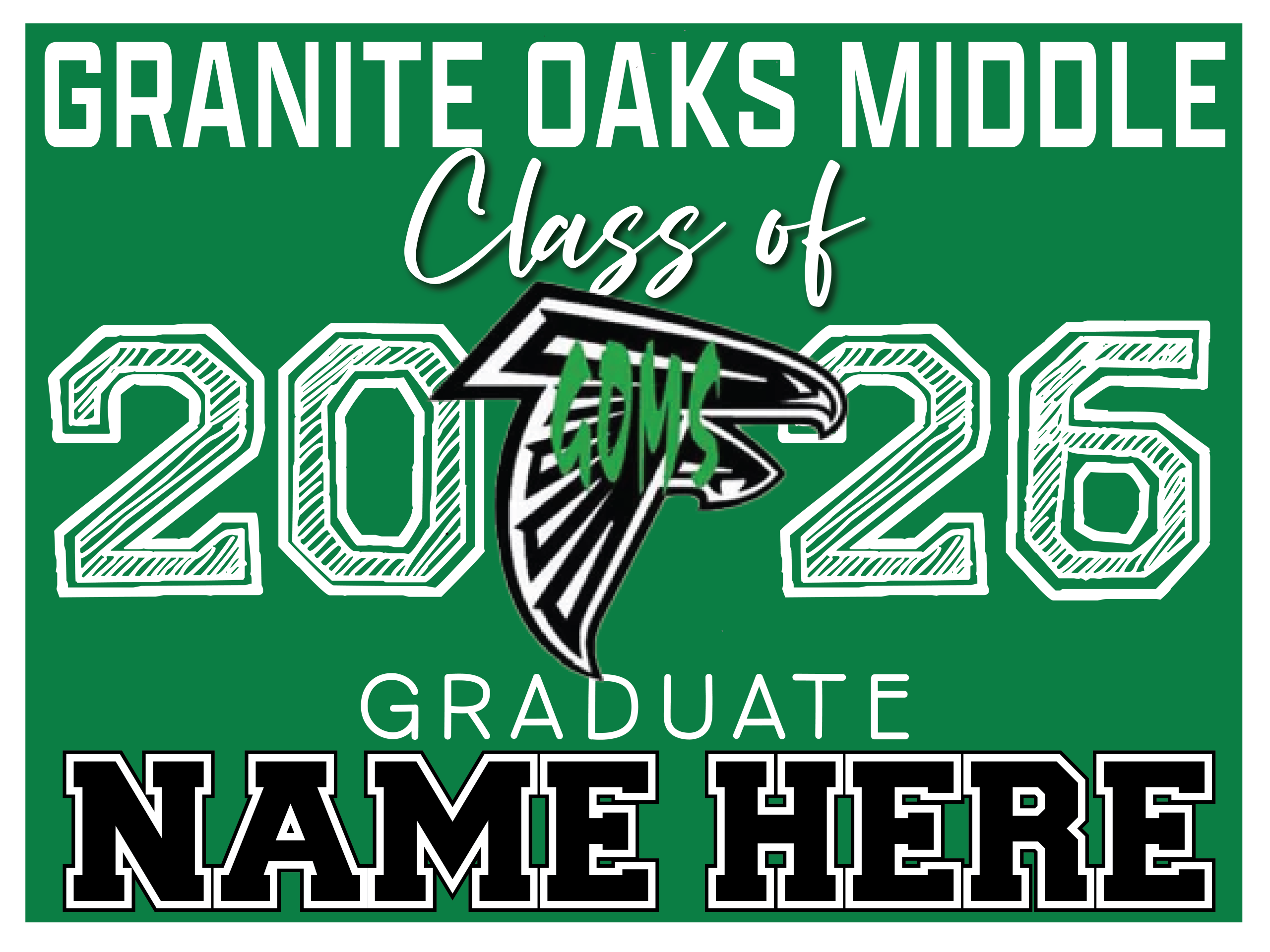GRANITE OAKS MIDDLE SCHOOL GRADUATION SIGNS 002$18.00 Granite Oaks Middle School Graduation Sign 18″x24″ sign with a metal H stake GRANITE OAKS MIDDLE SCHOOL GRADUATION SIGNS 002 quantity Add to cart Categories: Customizable, graduation Signs, School Spirit Products Description Additional information Description Back Additional information Weight 1.5 lbs Dimensions 25 × 19 × 1 in