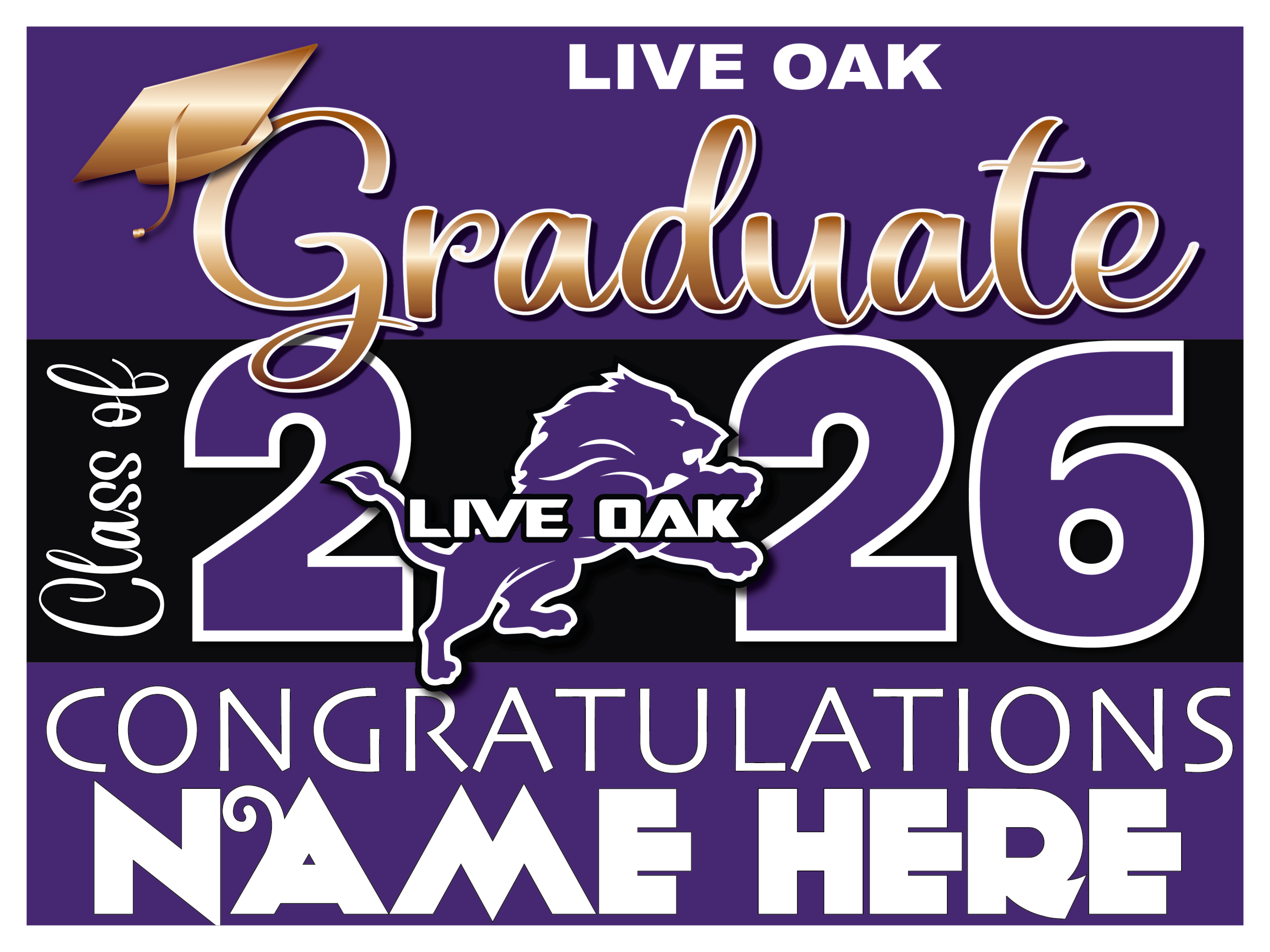Live Oak High School Senior Sign 003$18.00 Live Oak High School Graduation Sign 18″x24″ sign with metal H stake Live Oak High School Senior Sign 003 quantity Add to cart Categories: graduation Signs, School Spirit Products Description Description go back