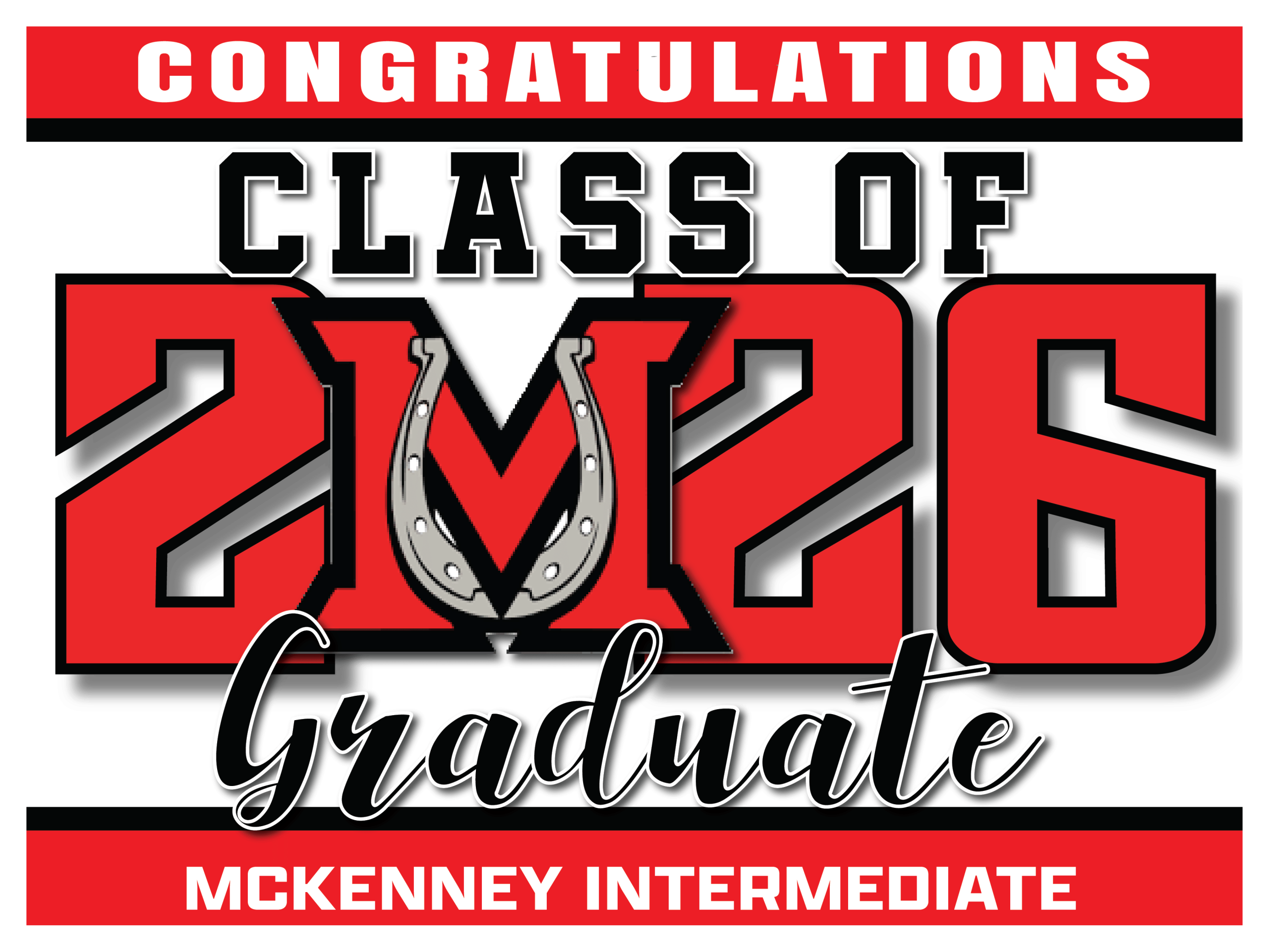 MCKENNEY INTERMEDIATE SCHOOL GRADUATION SIGNS 001$18.00 Mckenney Intermediate School Graduation Sign 18″x24″ sign with a metal H stake MCKENNEY INTERMEDIATE SCHOOL GRADUATION SIGNS 001 quantity Add to cart Categories: Customizable, graduation Signs, School Spirit Products Description Additional information Description Back Additional information Weight 1.5 lbs Dimensions 25 × 19 × 1 in