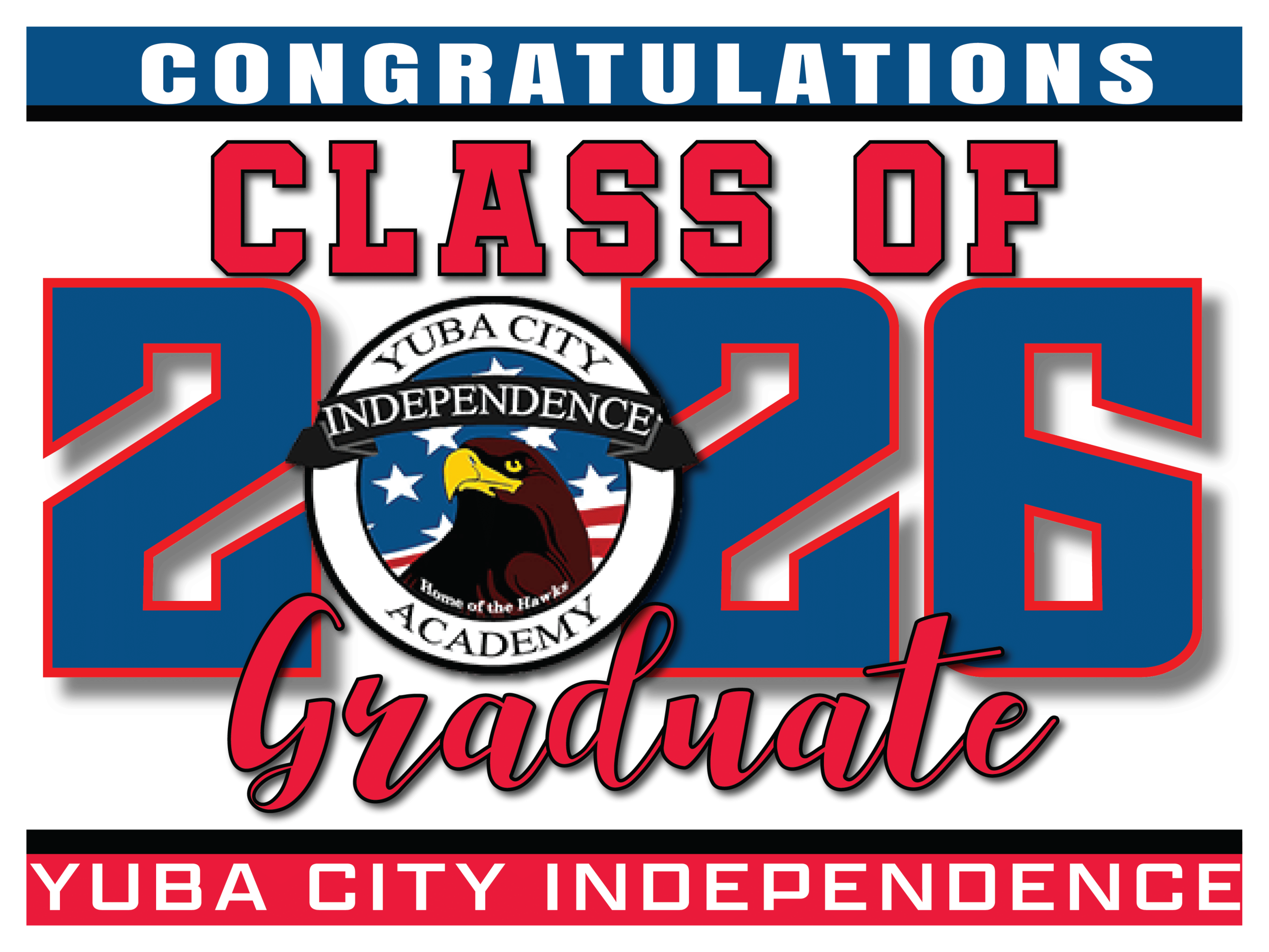 Yuba City Independence Academy Graduate Sign 001$18.00 Yuba City Independence Academy Graduation Sign 18″x24″ sign with a metal H stake Yuba City Independence Academy Graduate Sign 001 quantity Add to cart Categories: Customizable, graduation Signs, School Spirit Products Description Additional information Description go back Additional information Weight 2.5 lbs Dimensions 24 × 18 × .5 in