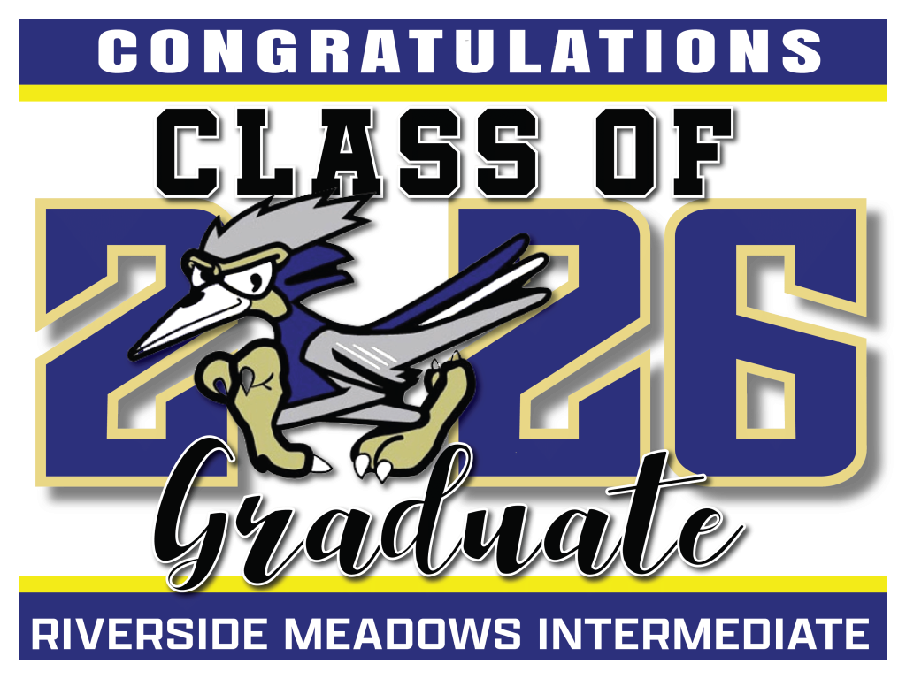 RIVERSIDE MEADOWS INTERMEDIATE SCHOOL - PLUMAS LAKE, CA All signs are 24″ wide x 18″ high and come with an H-stake New! Custom Design Graduation Signs with photo and H-Stake $28 each These are samples, we will change the logos and high school names to match your school. Click here to order Click here to order BACK TO SCHOOL SELECTION PAGE Regular Rectangle Signs with H-Stake $18 each Click here to purchase Click here to purchase Click here to purchase