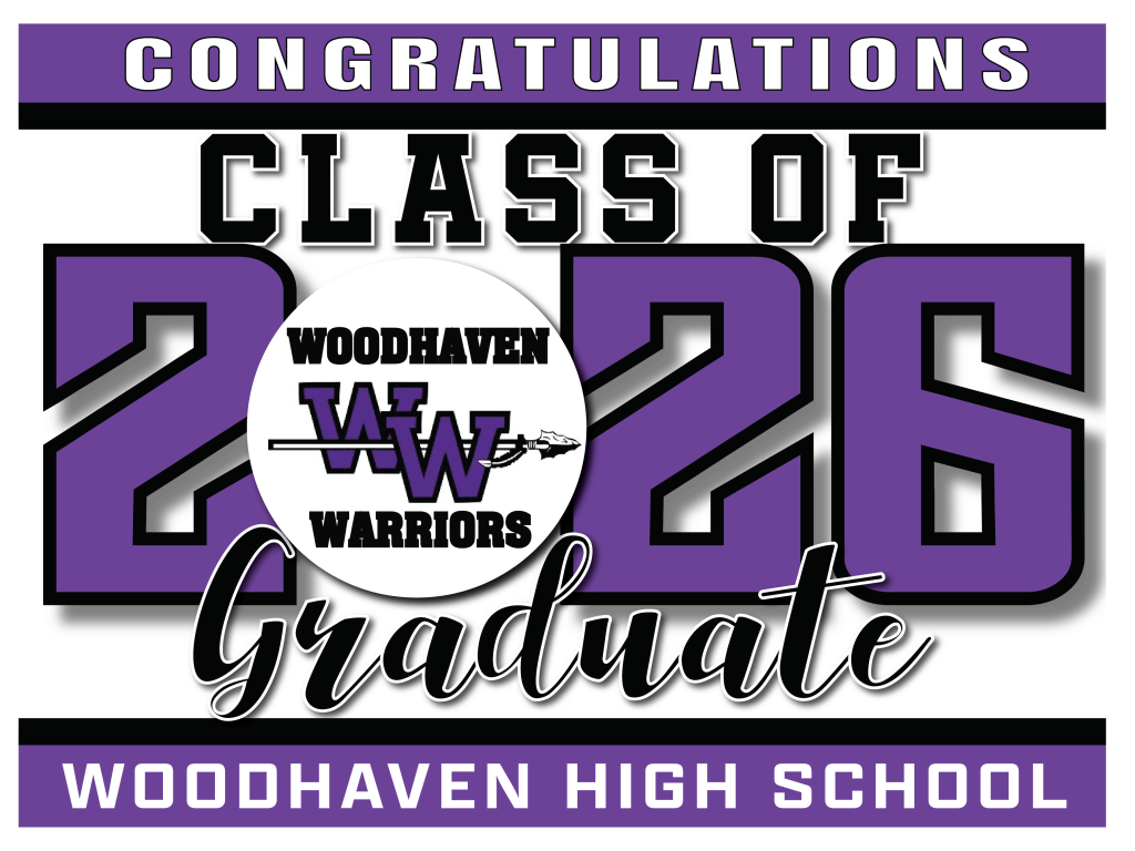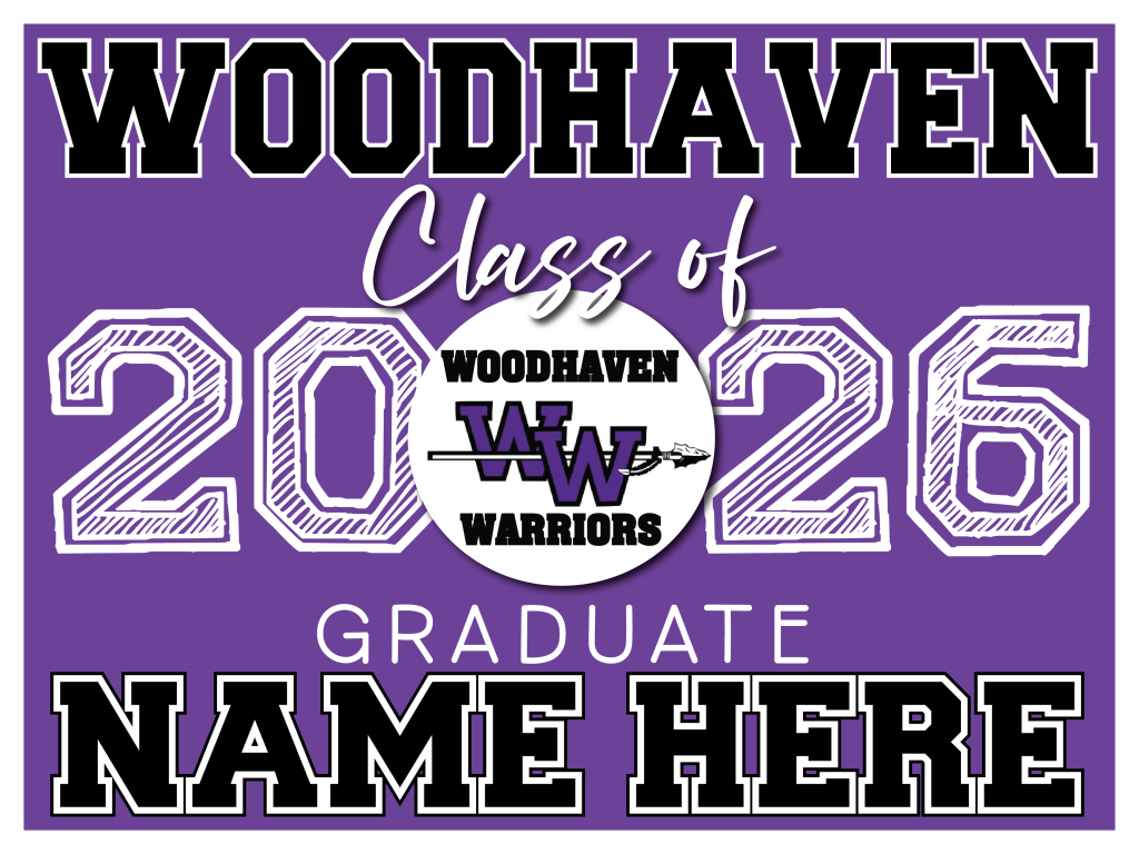 WOODHAVEN HIGH SCHOOL - WOODHAVEN, MI All signs are 24″ wide x 18″ high and come with an H-stake BACK TO SCHOOL SELECTION PAGE New! Custom Design Graduation Signs with photo and H-Stake $28 each These are samples, we will change the logos and high school names to match your school. Click here to order Click here to order Regular Rectangle Signs with H-Stake $18 each Click here to purchase Click here to purchase Click here to purchase